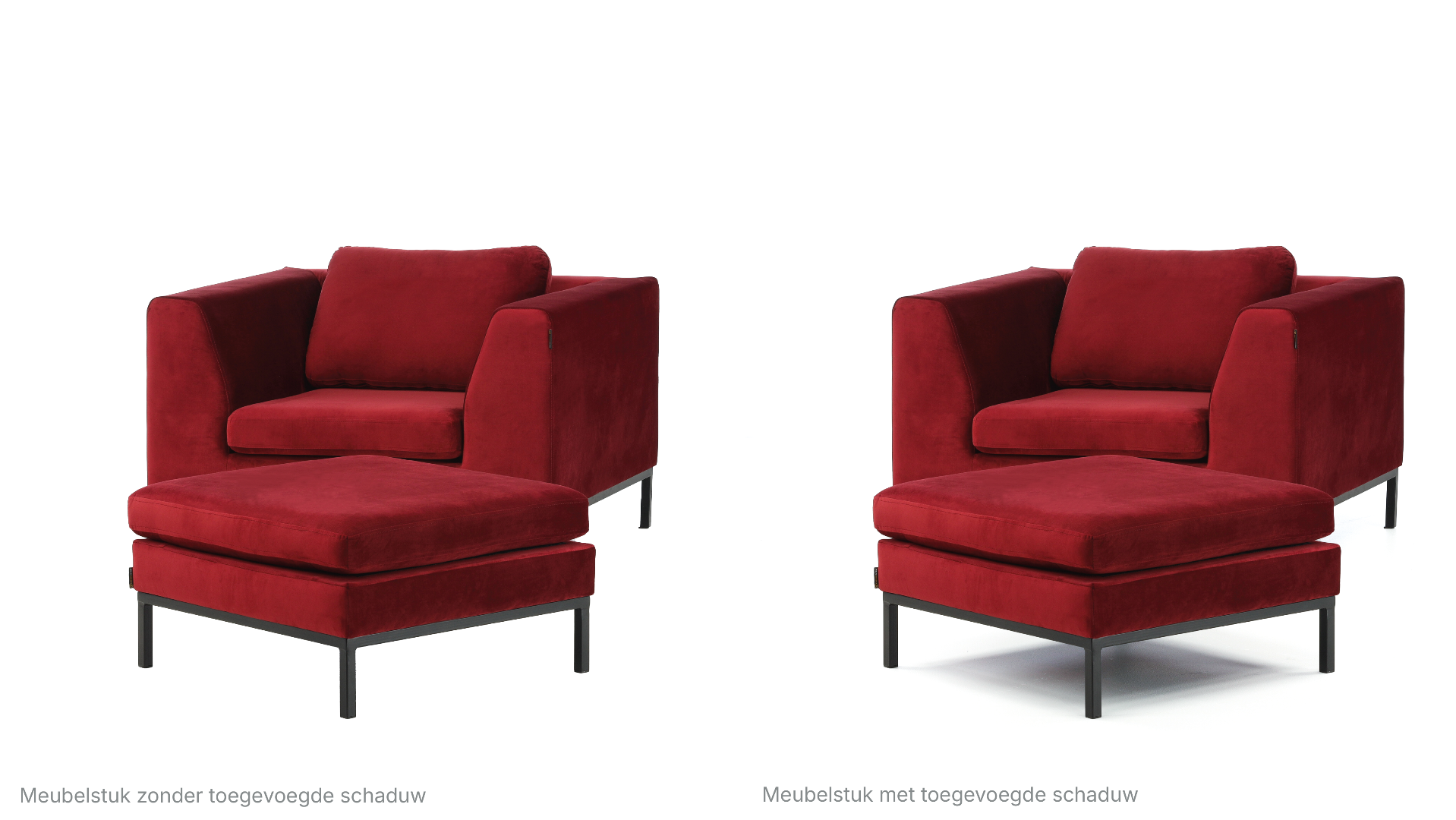 Pro tip: Wanneer je een witte achtergrond gebruikt, zorgt het toevoegen van een schaduw ervoor dat het product er natuurlijker uitziet. Het product zweeft dan niet in een lege ruimte. Net als in het voorbeeld hieronder. De rechter foto ziet er veel realistischer uit, toch? Dat komt door de schaduw.