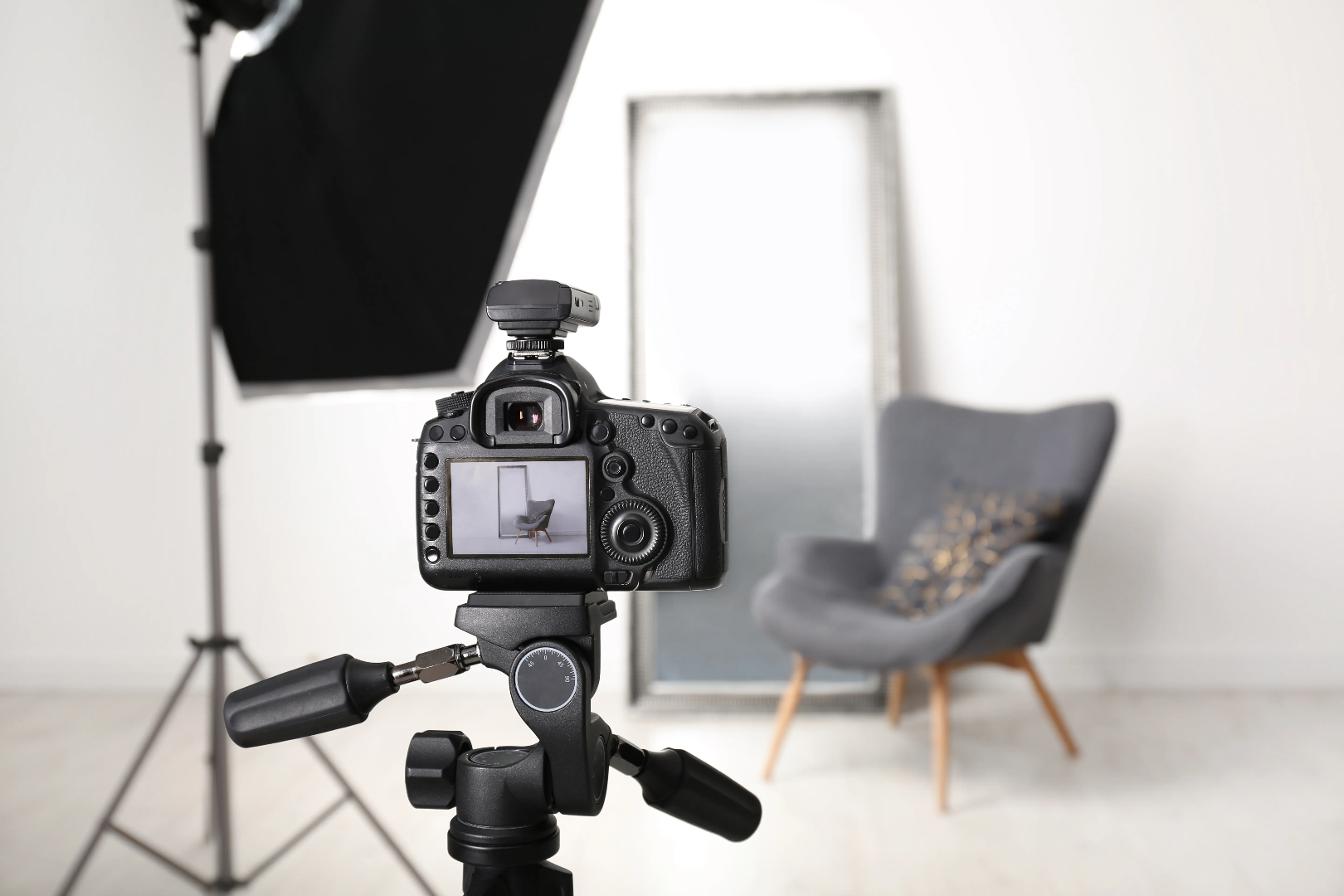 Een statief biedt een stabiele basis voor de camera en maakt het mogelijk de hoogte, hoek en positie van de camera naukeurig aan te passen. Dit is heel belangrijk bij het fotograferen van meubels, omdat het vaak nodig is om het meubelstuk vanuit verschillende hoeken te fotograferen zodat de belangrijke kenmerken en het ontwerp goed tot hun recht te laten komen.