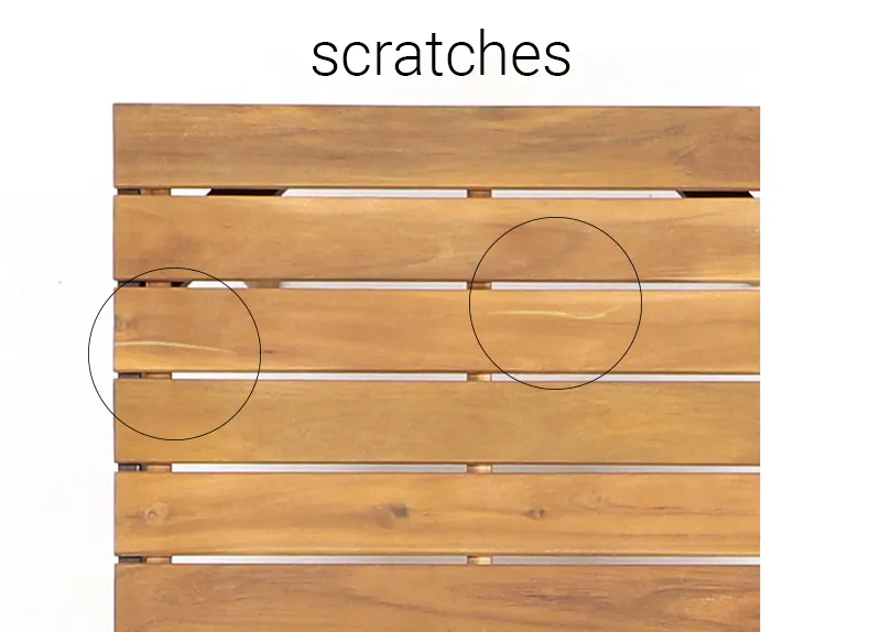 Als je een nieuw item fotografeert dat per ongeluk beschadigd is, bijvoorbeeld door krassen, moet je dit retoucheren om het meubelstuk een gepolijste uitstraling te geven. Maar overdrijf niet. Het laatste wat je wil, is dat mensen de kleur op de foto zien en dat deze er in het echt totaal anders uitziet.